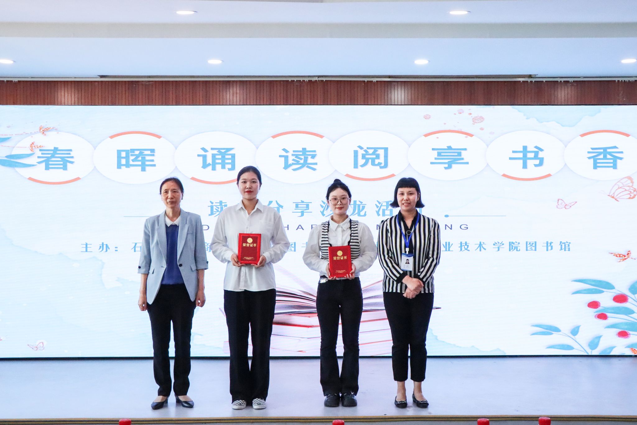 随后评委老师结合“阅读推广人”所分享的图书内容及临场表现综合评定,郭思诺、杨茗尧等14名同学分获一二三等奖及优秀奖,石家庄工商职业学院商学院、河北交通职业技术学院轨道交通系获得团体最佳组织奖。