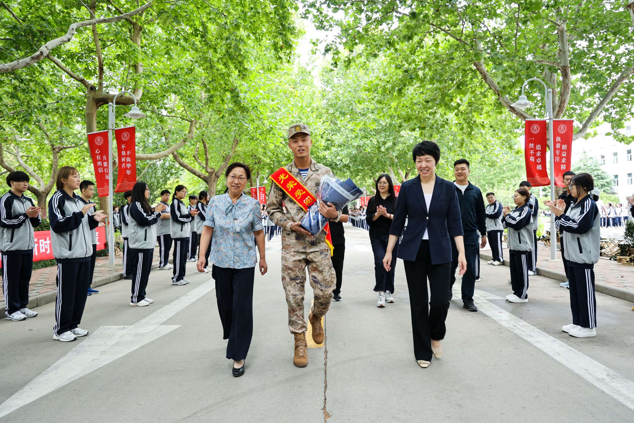 飒爽英姿显担当,荣光归来励韶华。9月17日上午,石家庄工商职业学院2024级护理专业学生王浠策,在圆满完成纪念中国人民抗日战争暨世界反法西斯战争胜利80周年大会阅兵任务后,载誉回到母校。学院党委书记何红华,学院党委副书记、院长助理卓丽杰带领师生代表早早等候,为他送上鲜花与绶带,真挚表达祝贺与关怀。