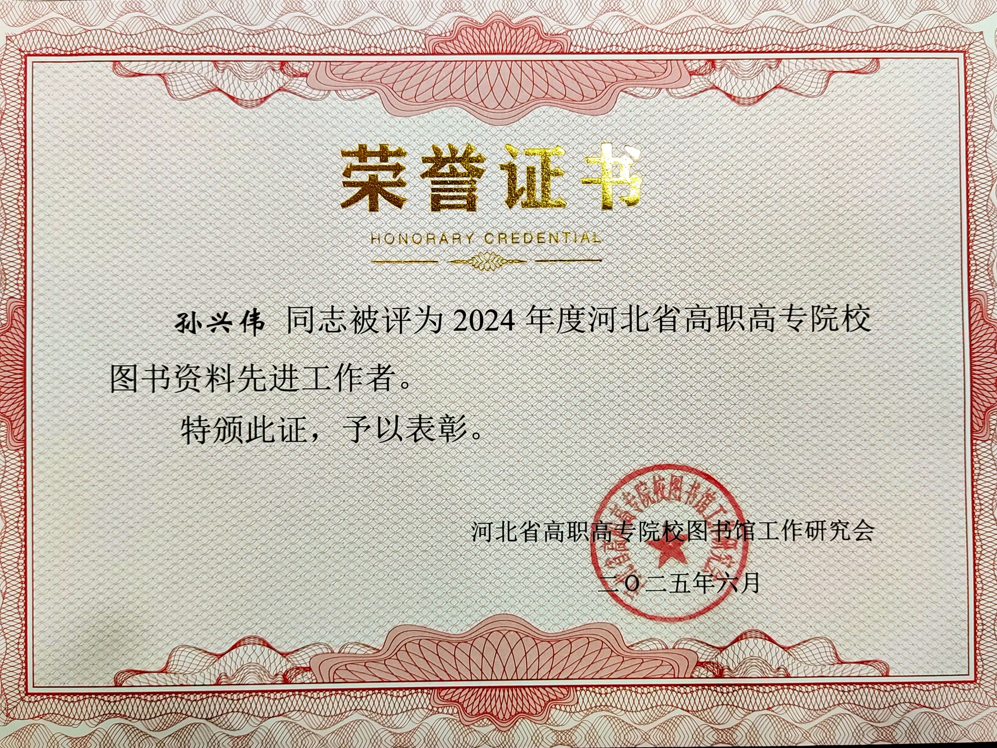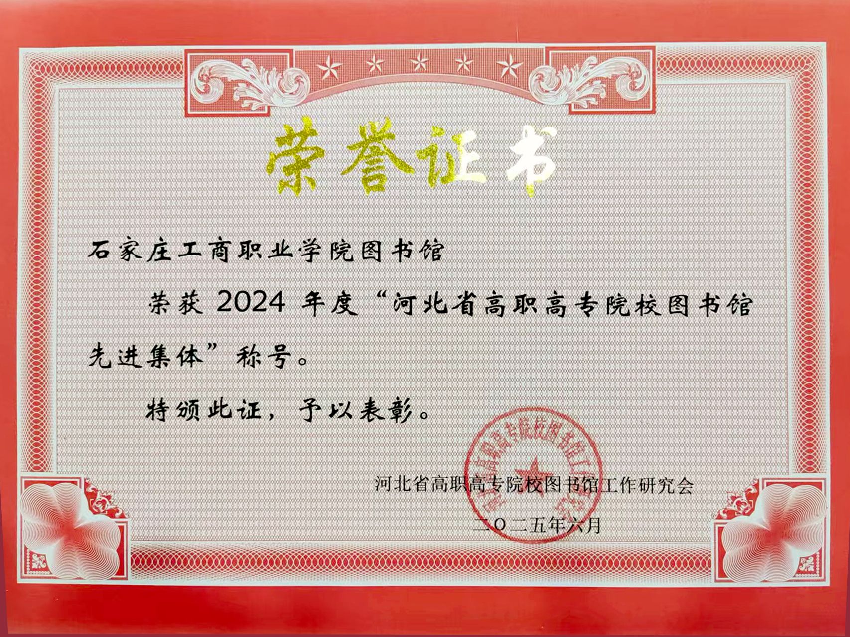 近日,河北省高职高专院校图书馆工作研究会发布《关于表彰2024年度河北省高职高专院校图书馆先进集体的决定》,石家庄工商职业学院图书馆荣获2024年度“河北省高职高专院校图书馆先进集体”称号,成为全省17个获此殊荣的高职高专院校图书馆之一,也是学院图书馆第八次获此殊荣。学院图书馆副馆长孙兴伟被评为2024年度河北省高职高专院校图书资料先进工作者。这些荣誉不仅是对学院图书馆工作的高度认可,更是对其在推动高职高专院校图书馆事业发展中贡献的充分肯定。