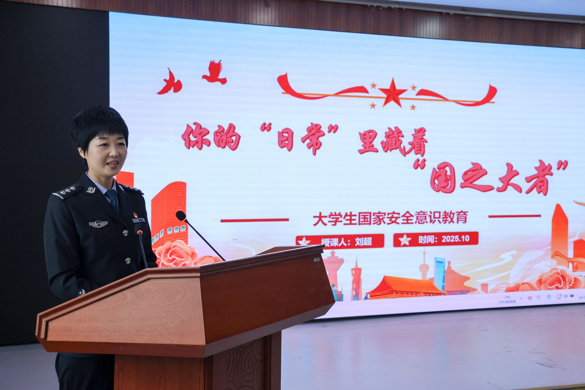 讲座中,文保大队刘超警官通过破局、警示、解密、行动、共鸣五个主题,结合典型案例为学院师生带来一场生动的国家安全思政课。她指出,面对网络上的各种信息,同学们要有敏锐的分辨能力,不信谣、不传谣、更不造谣,并号召同学们要加强自我防范意识,以实际行动维护国家安全。