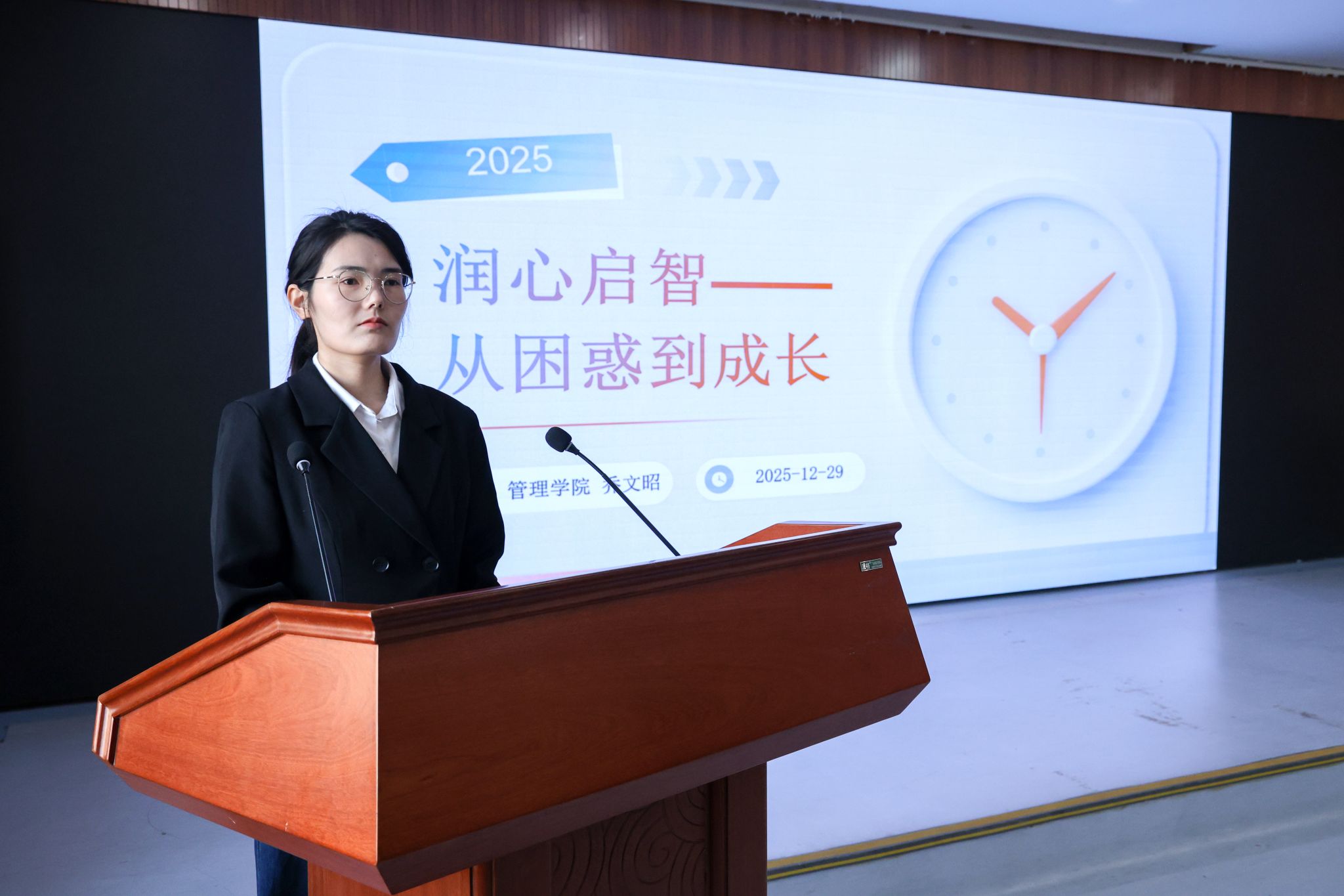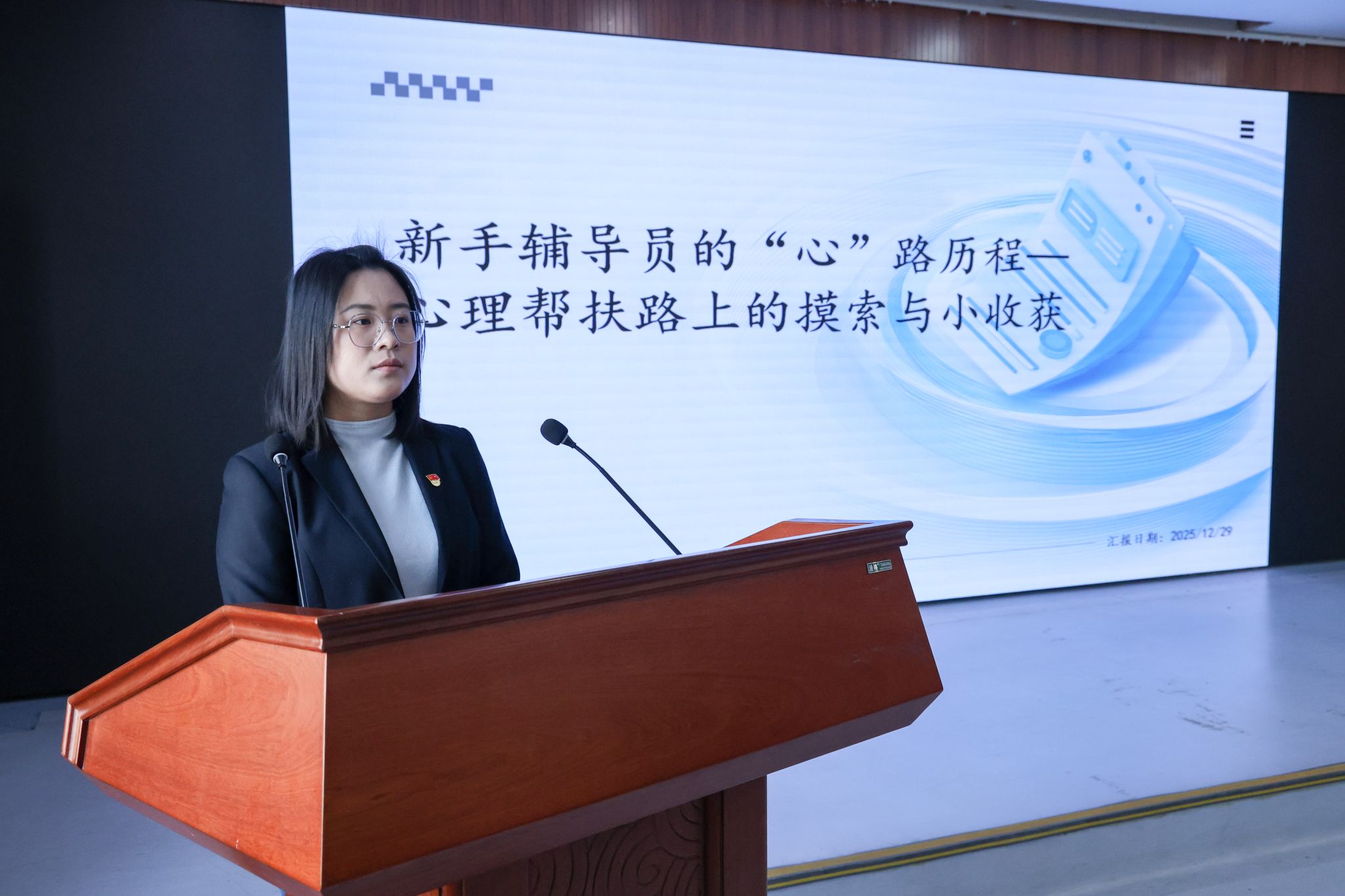 管理学院辅导员乔文昭以“润心启智——从困惑到成长”为主线,从职能定位、日常排查、危机解决、重点预警四个方面系统介绍了如何将心理育人融入学生日常,实现从“发现问题”到“赋能成长”的转变。