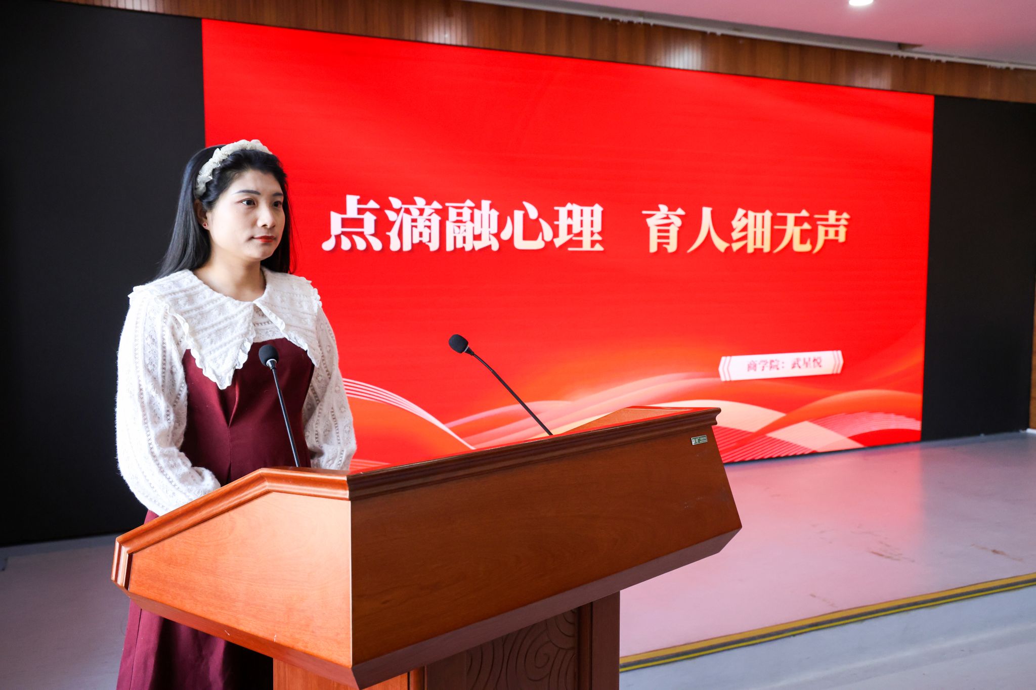 商学院辅导员武星悦以“点滴融心理 育人细无声”为主题,阐述了如何将心理关怀融入考核材料梳理、日常沟通及个案帮扶中,通过潜移默化的方式滋养学生心灵,助力学生成长。