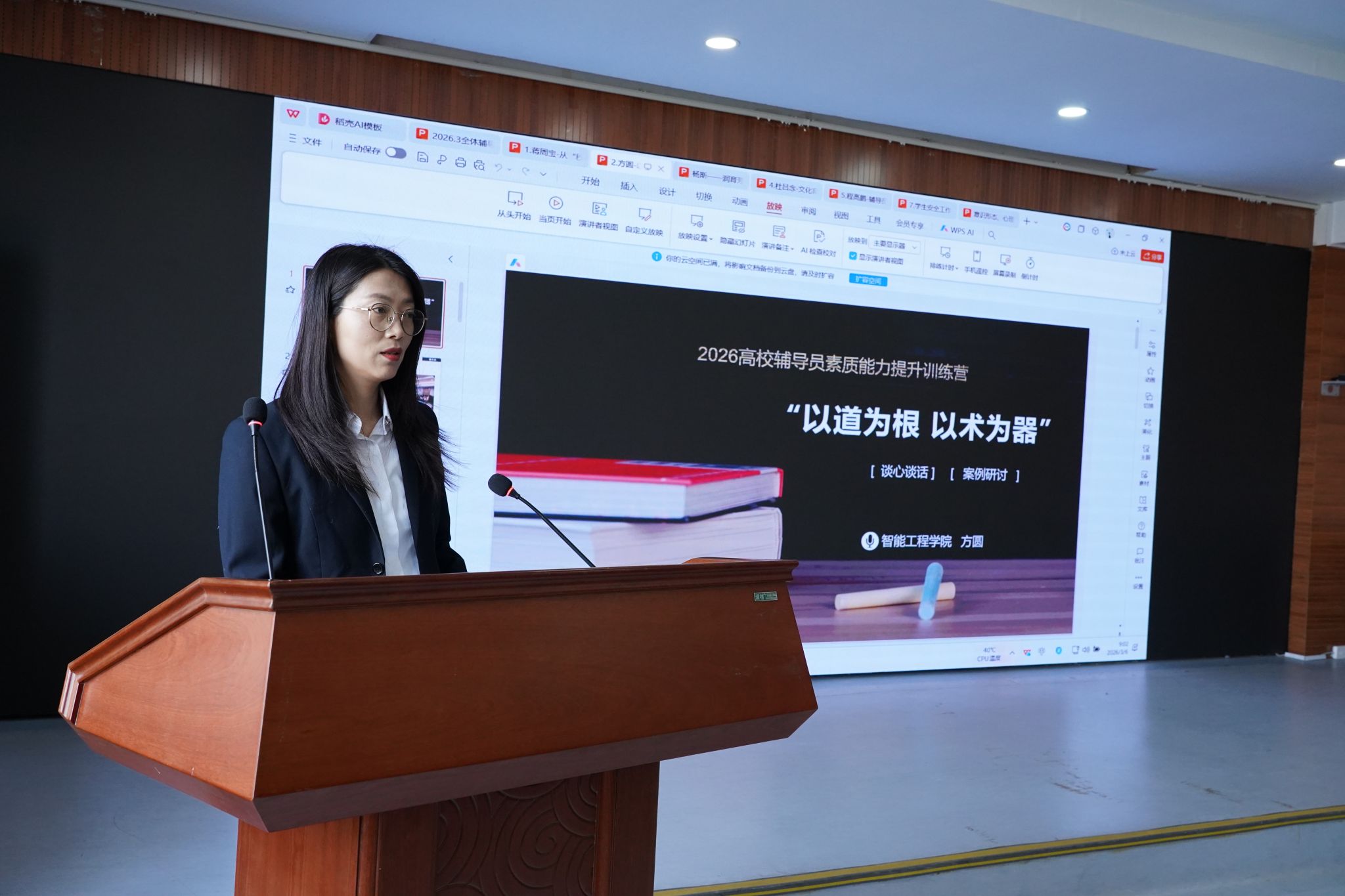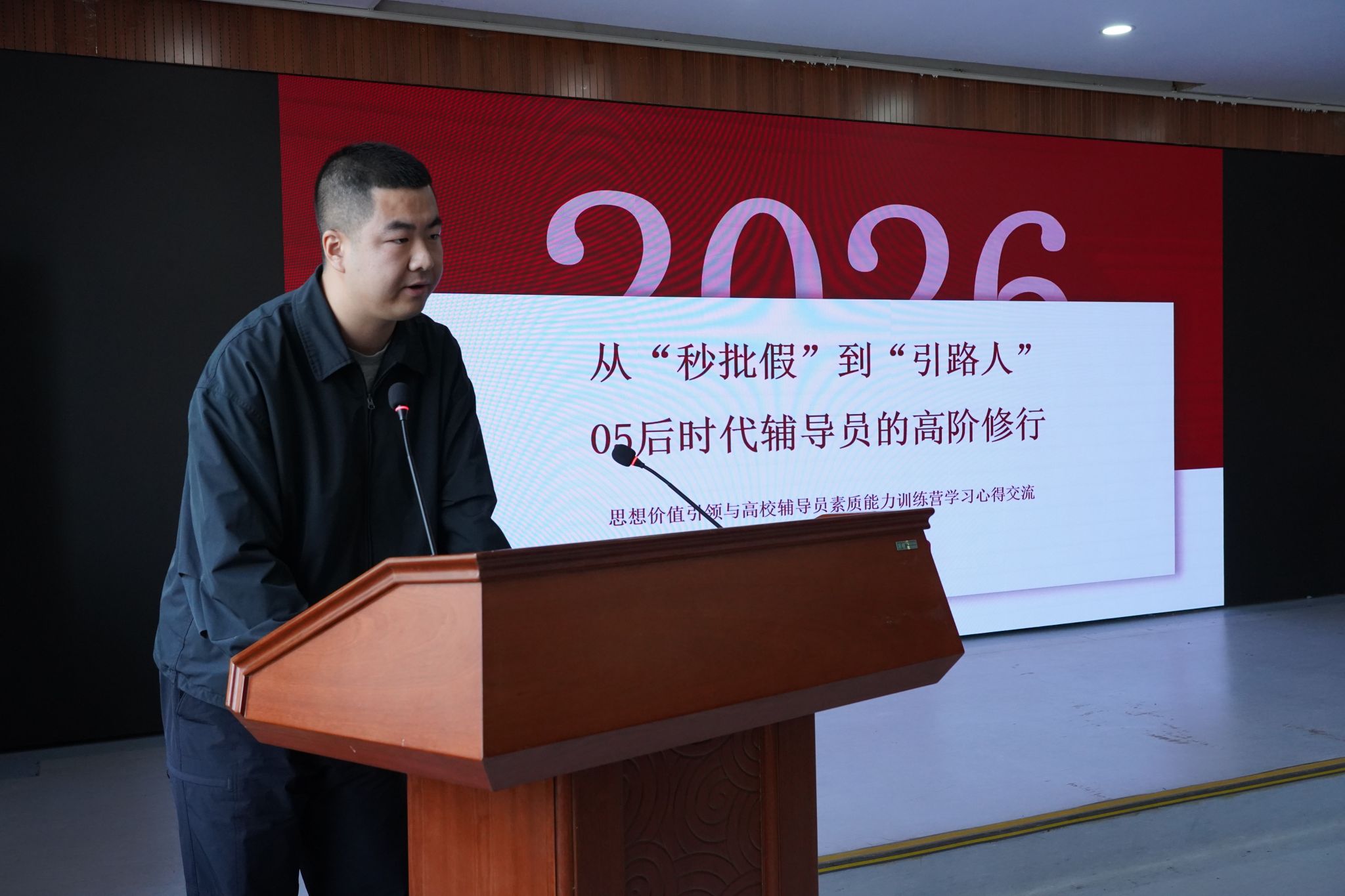 在辅导员沙龙交流环节,智能制造学院蒋周宝,智能工程学院方圆、杨斯,社会管理学院杜吕念,智慧康养学院程高鹏五位辅导员围绕学生思想价值引领、辅导员素质能力大赛参训感悟、学生文化活动创新实践等主题分享经验做法。大家畅所欲言、互学互鉴,在交流中碰撞思路、在分享中共同提升,有效搭建了辅导员队伍经验共享、能力共进的优质平台。