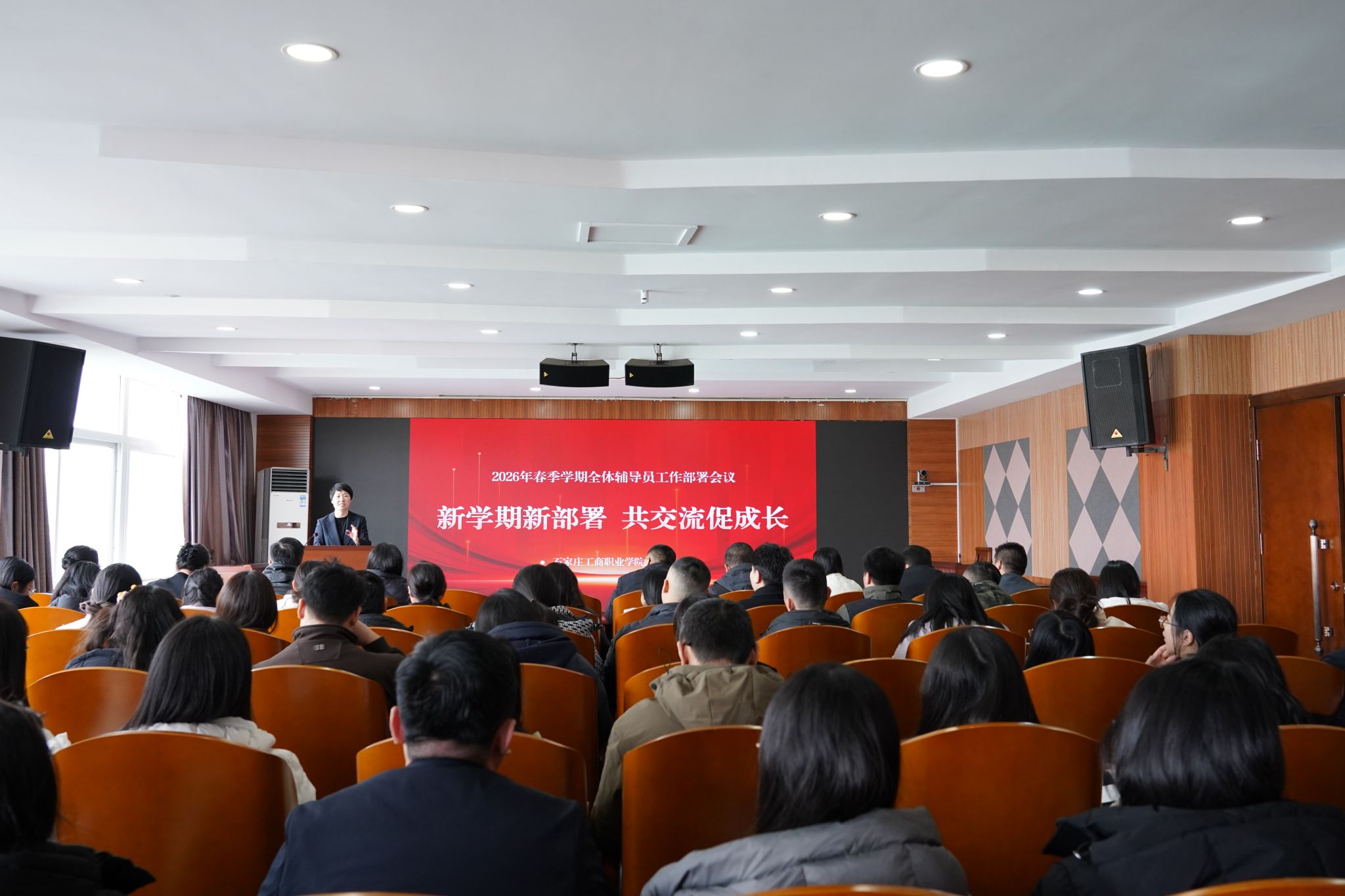 为全面统筹推进新学期学生工作,凝聚育人合力,提升辅导员队伍专业化、职业化建设水平,3月6日,学校在滨河校区图书馆二楼报告厅召开“新学期新部署 共交流促成长”2026年春季学期全体辅导员工作部署会议暨3月辅导员沙龙会。党委副书记、院长助理卓丽杰出席会议,学生处团委负责人、各二级学院学生管理副院长、团总支书记及全体辅导员参会。