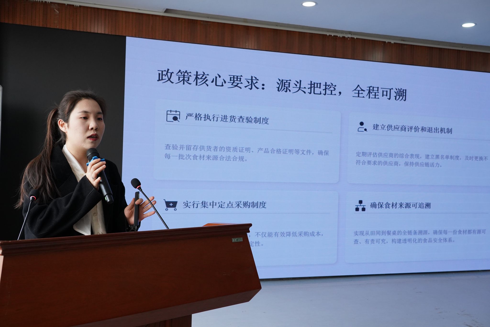 学校特邀华测检测认证有限公司彭荟霖主讲,她深耕食品安全领域多年,常年参与各类食品安全标准审核与制定,累计审核全国高校食堂超100家。培训中,她围绕《大学食堂食材采购管理规范》《大学食堂食品添加剂使用管理规范》《大学食堂食品安全综合管理体系建设》《校园食品安全事故反思》等核心内容展开专业讲解,内容紧扣高校食堂食品安全管理的关键环节与重点难点,既有政策规范的解读,也有实操经验的分享,更有典型案例的剖析,让参训人员全方位、深层次掌握校园食品安全管理的要点与要求。