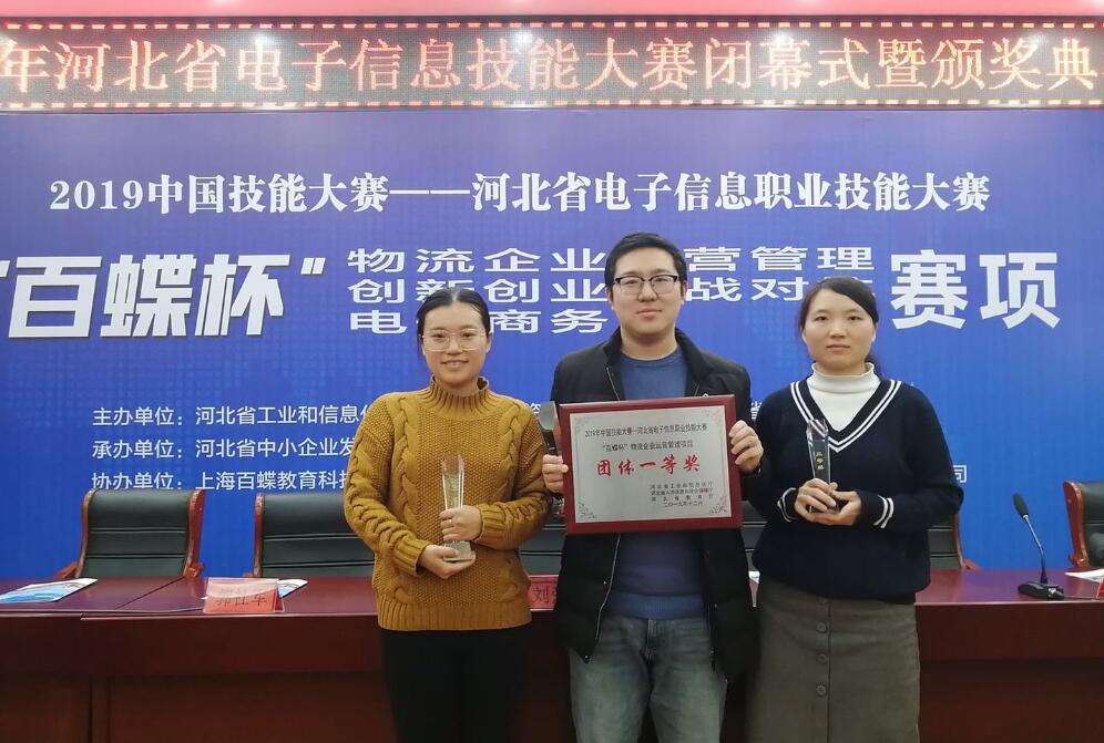 近日,学院收到了一份沉甸甸的喜悦,是关于2019年12月25日-27日举办的中国技能大赛河北省电子信息职业技能大赛的获奖名单通知和获奖证书。由管理学院物流教研室吕贵鑫、冯卉苒、郜玉环三位教师组成的石家庄工商职业学院教师代表队斩获物流企业运营管理赛项团体一等奖,并包揽个人一、二、三等奖。