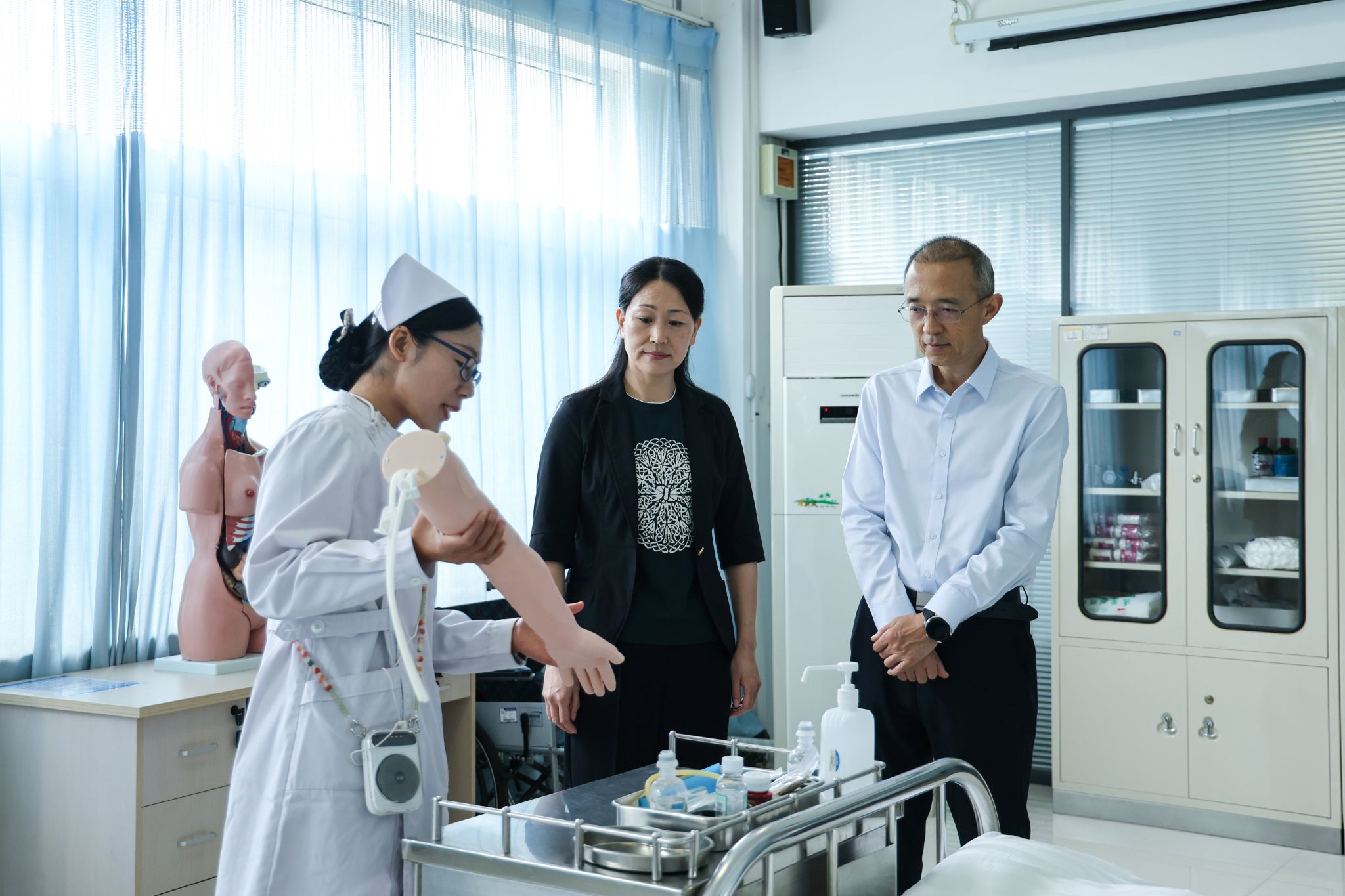 在座谈会前,冯磊书记一行实地参观考察了学院校史馆、图书馆、护理实训基地等教育教学场所,对学院取得的教育教学成果给予高度肯定。