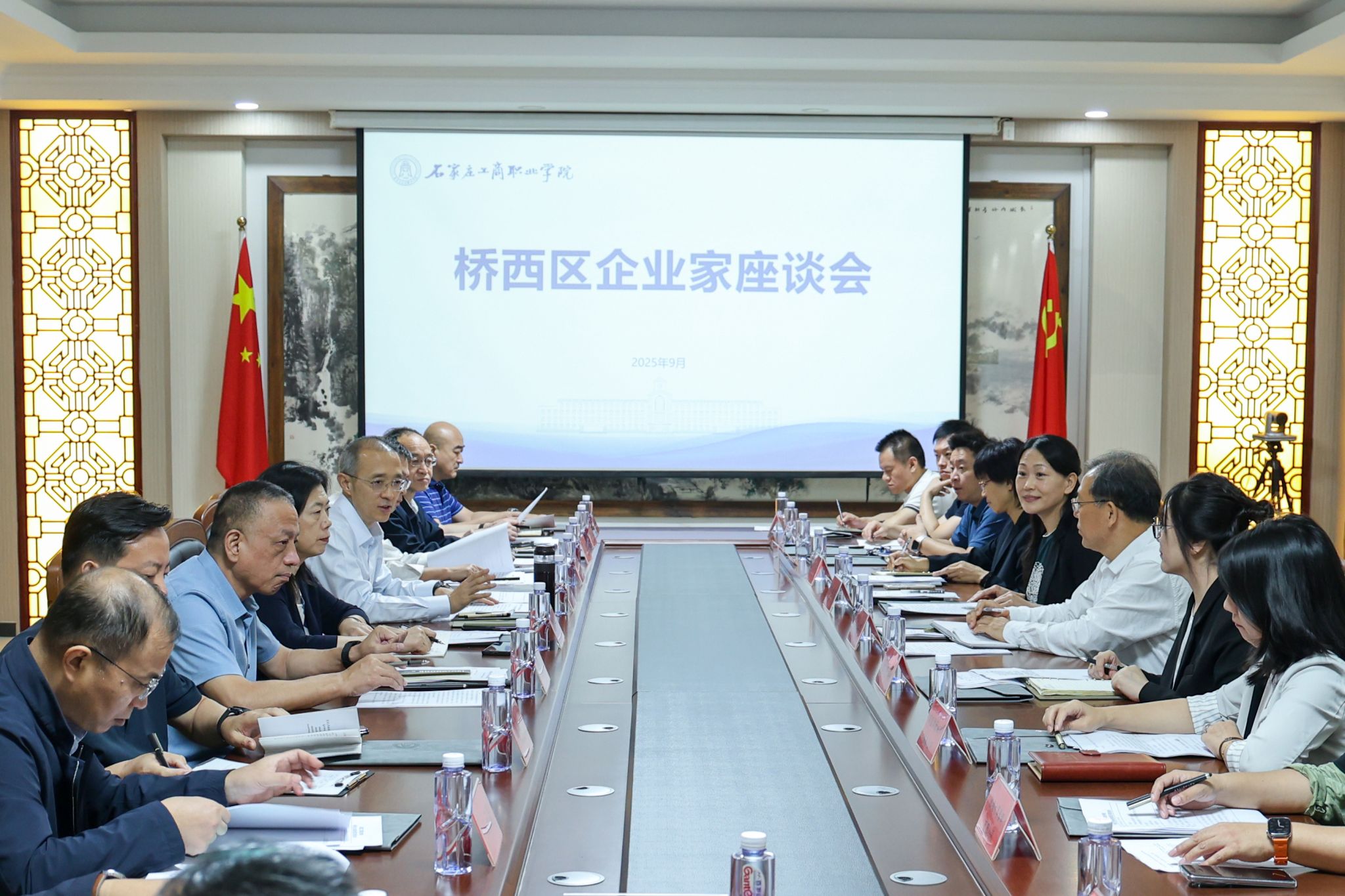 9月21日上午,由桥西区委书记冯磊主持的桥西区企业家座谈会在石家庄工商职业学院召开。会议以“校政企联动强赋能,聚合力共赢谋发展”为主题,聚焦区域经济发展中的关键领域,围绕“共同推进传统商贸转型”和“共同推进健康社区与康养服务”,搭建政府、学院与企业三方对话平台,通过深化校政企合作推动产业升级与社会服务创新。